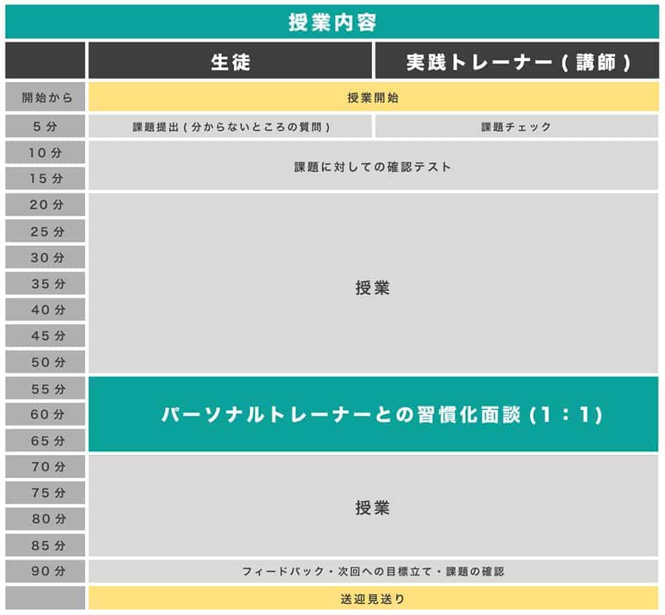 生徒一人に対して、勉強を教える講師とは別に専属のパーソナルトレーナーがつきます。